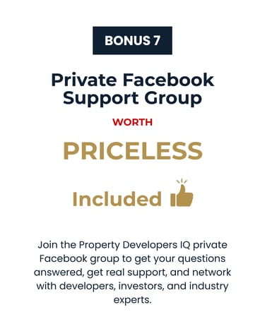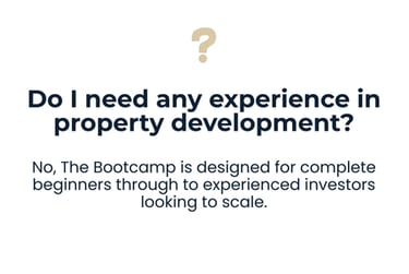 At The Property Developers Bootcamp you will learn the proven step-by-step D.E.V.E.L.O.P Formula, tools, and knowledge real developers use to find, fund, and deliver profitable projects.