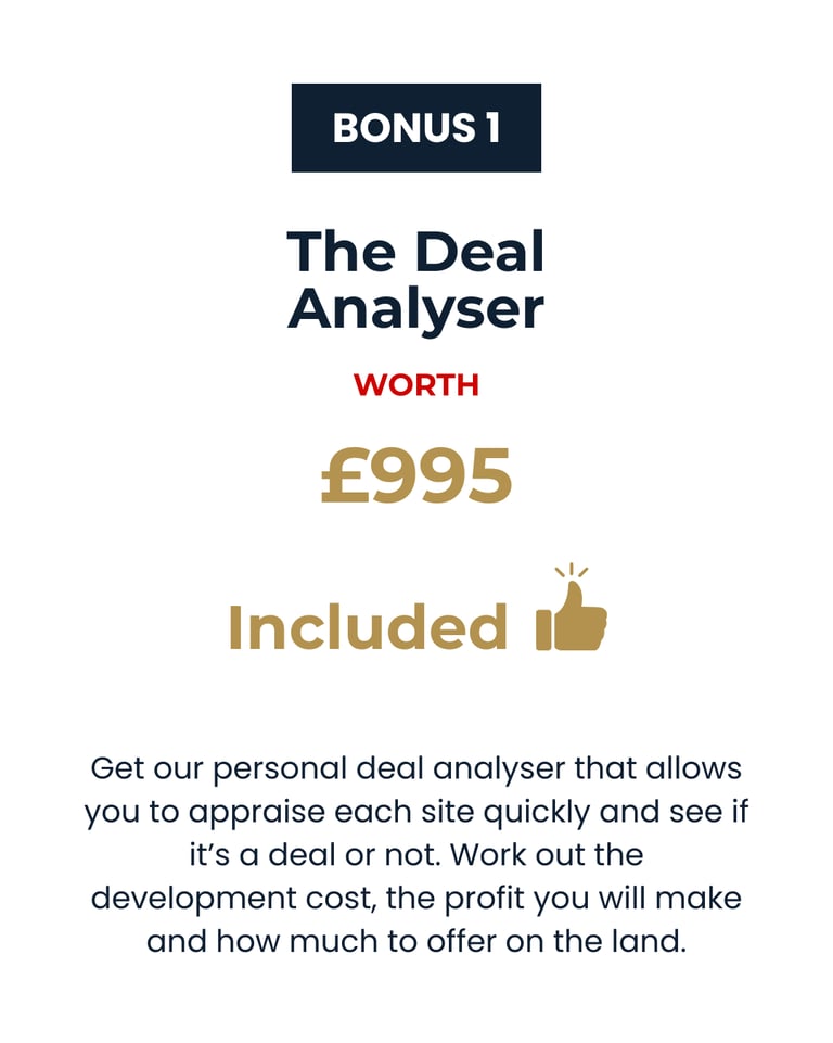 You will learn how to structure and present offers professionally, negotiate with confidence, and use contracts and legal agreements to control land with minimal upfront capital. You’ll also discover creative acquisition strategies - including how developers legally secure land for as little as £1 - and the exact steps involved in making these deals work.
